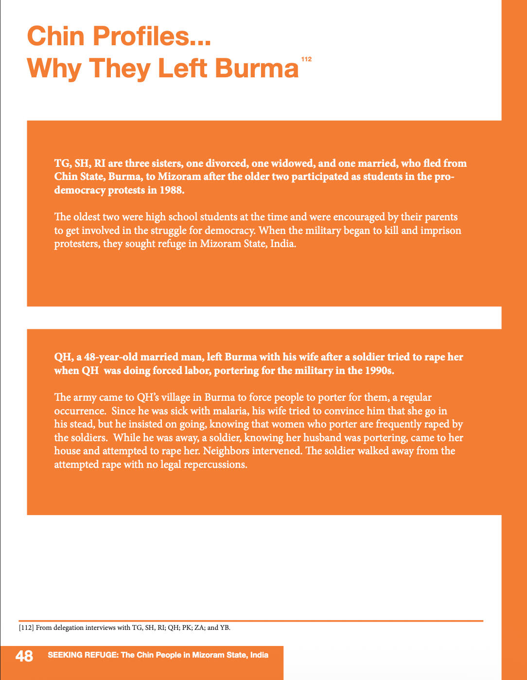 The website was designed to match the visual identity of the report, and was built at the same time as the report design. This was a rolling project where content updates had to be implemented into the report during the design process.The report had a limited print run and as distributed to advocates and gevernment representatives.As part of the team, I met a bipartisan group of senators where the report was presented alongside a photo gallery showcasing the lived experience of the Chin People in Mizoram.